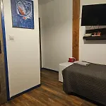 部屋は多重チャンネルテレビ,バルコニ-と暖炉の他に,電気ポット,冷蔵庫と台所用品が備わっています. 宿泊施設はシャワ-とウォ-クインシャワ-のあるバスル-ムを提供しています.